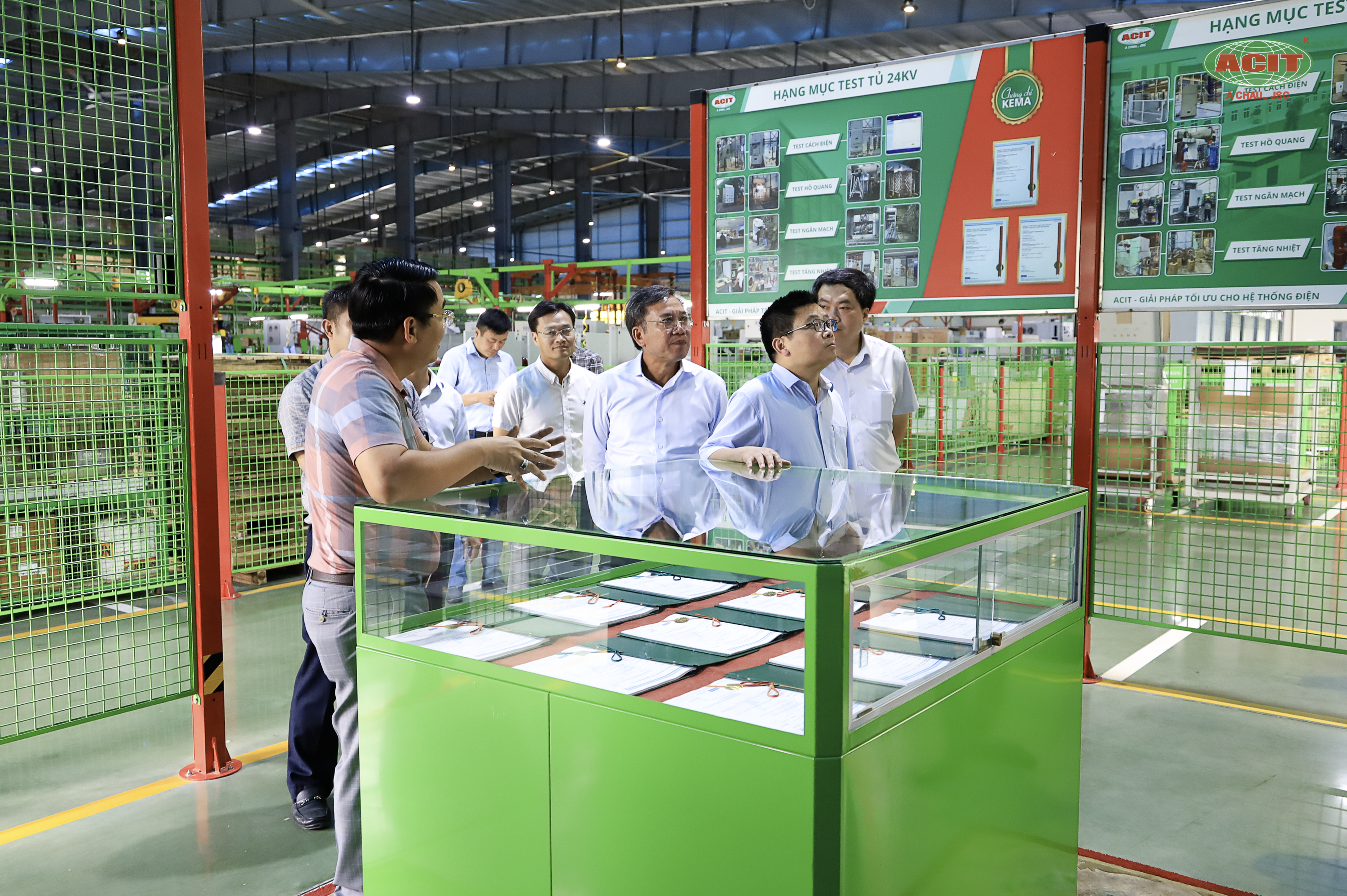 Trong khuôn khổ chuyến thăm, Thứ trưởng Bộ Công thương đã đi tham quan dây chuyền sản xuất chuyên nghiệp và hiện đại của nhà máy, nghe giới thiệu về các sản phẩm cốt lõi do chính ACIT đầu tư nghiên cứu sản xuất, đạt tiêu chuẩn quốc tế, được ghi nhận là sản phẩm Thương hiệu Quốc gia và đạt giải thưởng khoa học công nghệ Trần Đại Nghĩa. Tại đây, Chủ tịch HĐQT kiêm TGĐ Phạm Đình Thắng đã báo cáo Thứ trưởng về dây chuyền sản xuất tủ RMU ACSafe đang được lắp đặt tại nhà máy, dự kiến sẽ hoàn thiện vào tháng 10/2025. Tủ RMU ACSafe do ACIT sản xuất hứa hẹn sẽ làm đa dạng hoá bộ sản phẩm chủ lực của công ty và chiếm lĩnh thị trường.