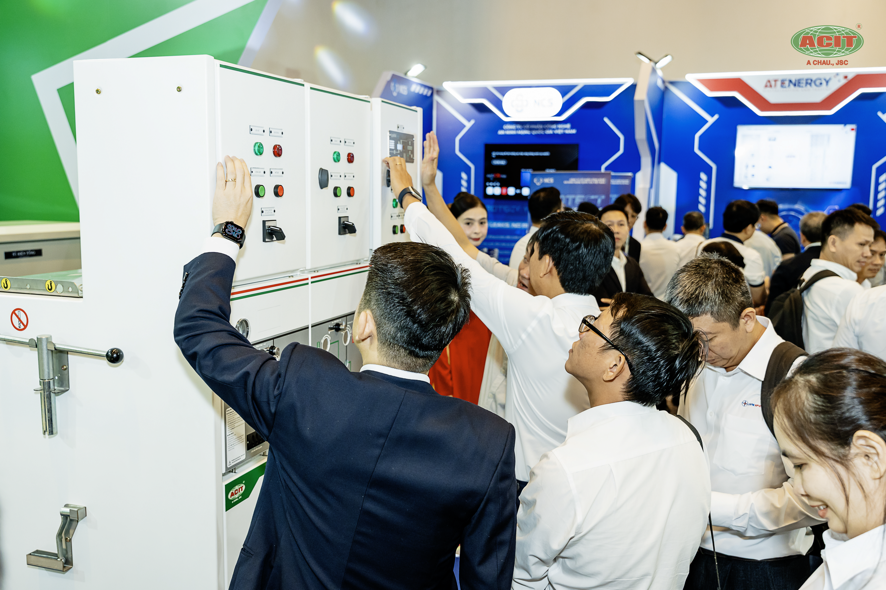 Gian hàng của Công ty Cổ phần Kỹ thuật Công nghiệp Á Châu (ACIT) xuất hiện nổi bật với màu xanh lá cây thương hiệu, đưa đến giới thiệu các sản phẩm chủ lực, chất lượng cao, tiêu chuẩn quốc tế do ACIT sản xuất. Đặc biệt, gian hàng trưng bày đầy đủ các mẫu tủ RMU ACSafe – một sản phẩm cốt lõi của ngành điện mà ACIT là đơn vị đầu tiên tại Việt Nam đã làm chủ được công nghệ, triển khai test kiểm định tại các đơn vị kiểm định uy tín của thế giới.