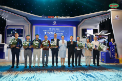 Ông Bùi Văn Đam - Trưởng Ban Năng lượng ACIT cùng các nhà khoa học khác nhận kỷ niệm chương tại chương trình